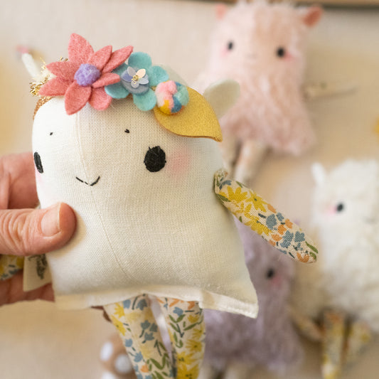 In this sale we will have - watercolor/mixed media paintings, Wee Pixies (our new super teeny tiny dolls), Jointed Unicorns, and some pretty accessories for them.