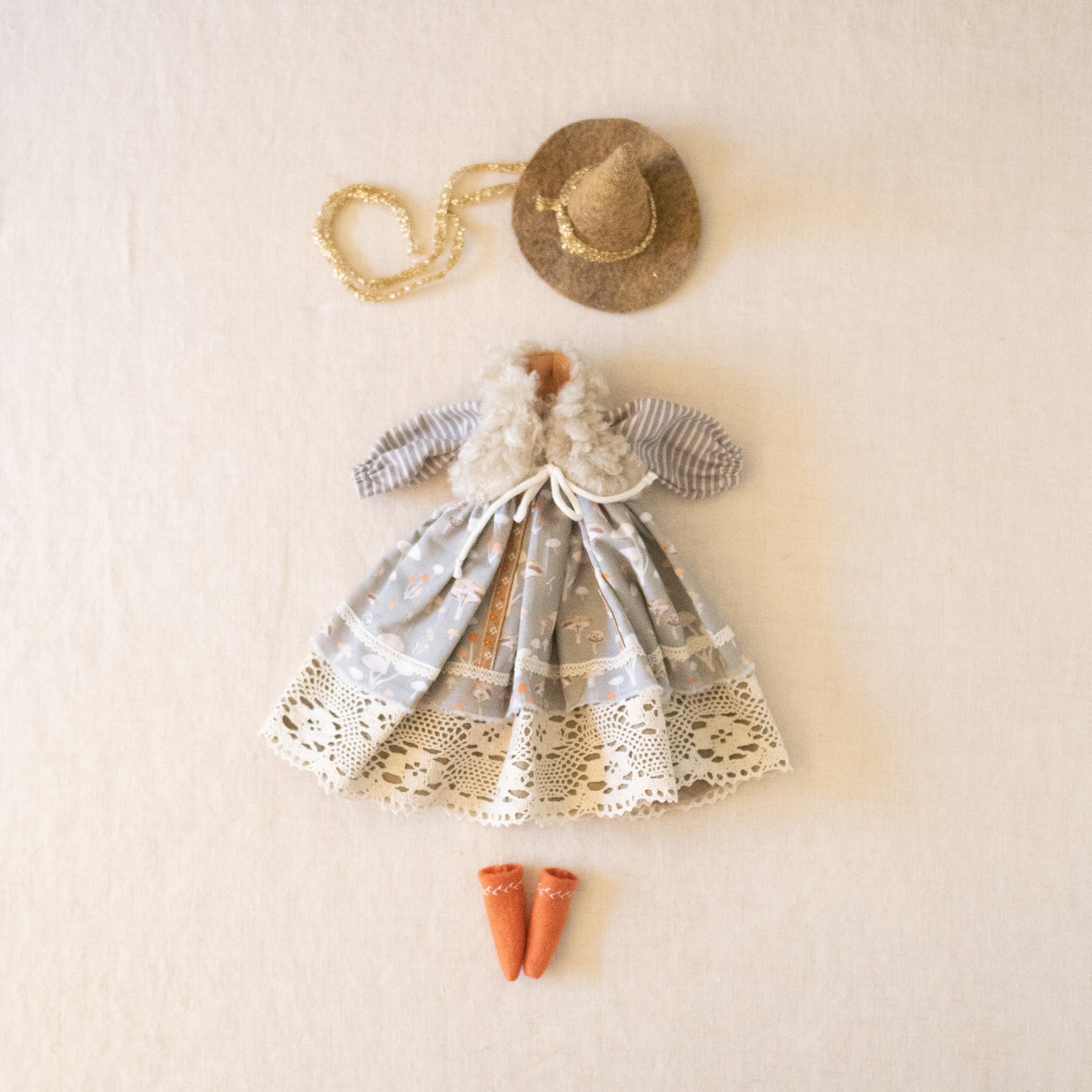 A darling cottage core witch clothing bundle for all your 14" Forest Creature friends!