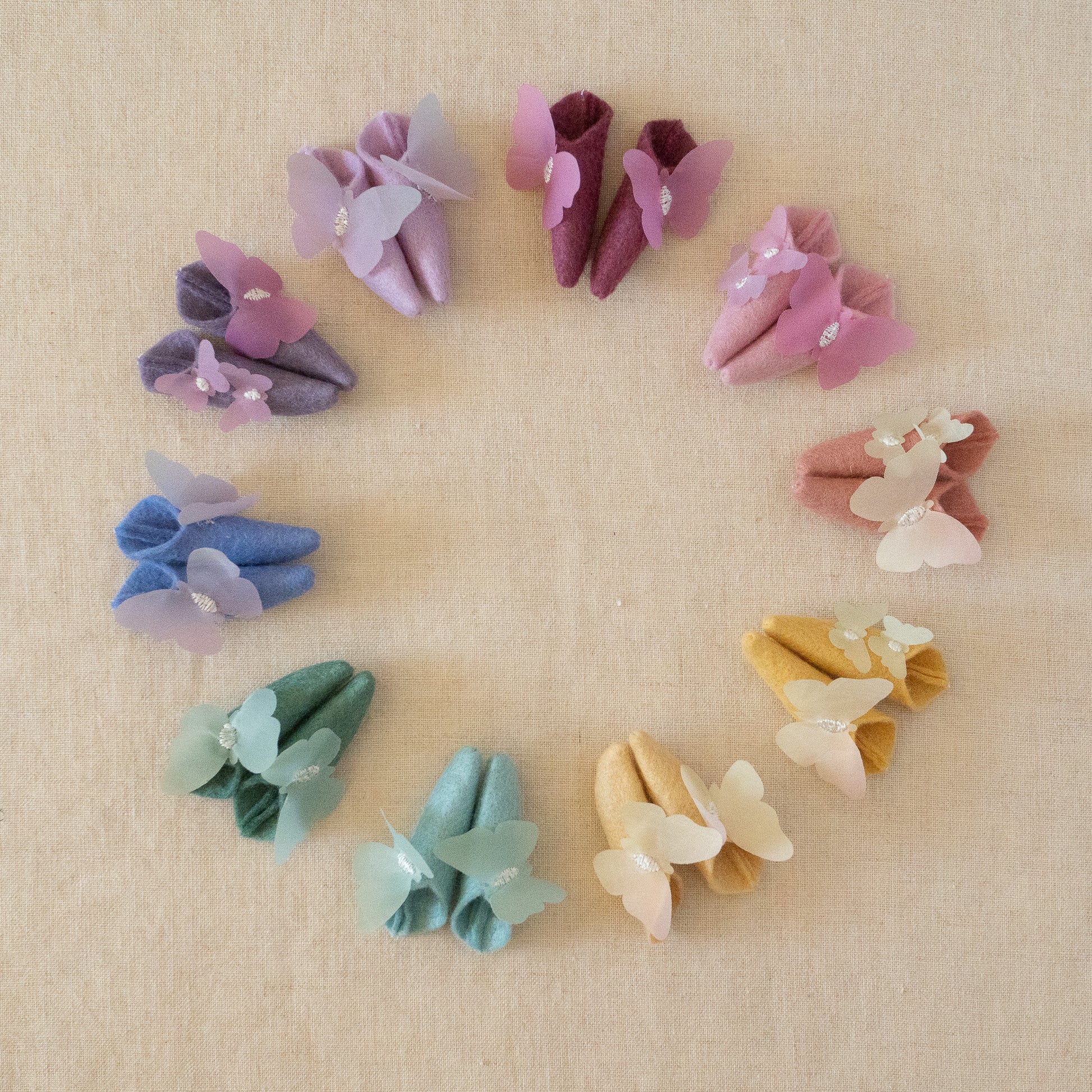 This listing is for a pair of felt boots that fits 14" Pixies, Foxes, and Unicorns. Hand-stitched gauze butterflies make these boots extra special! Make your color selection above.