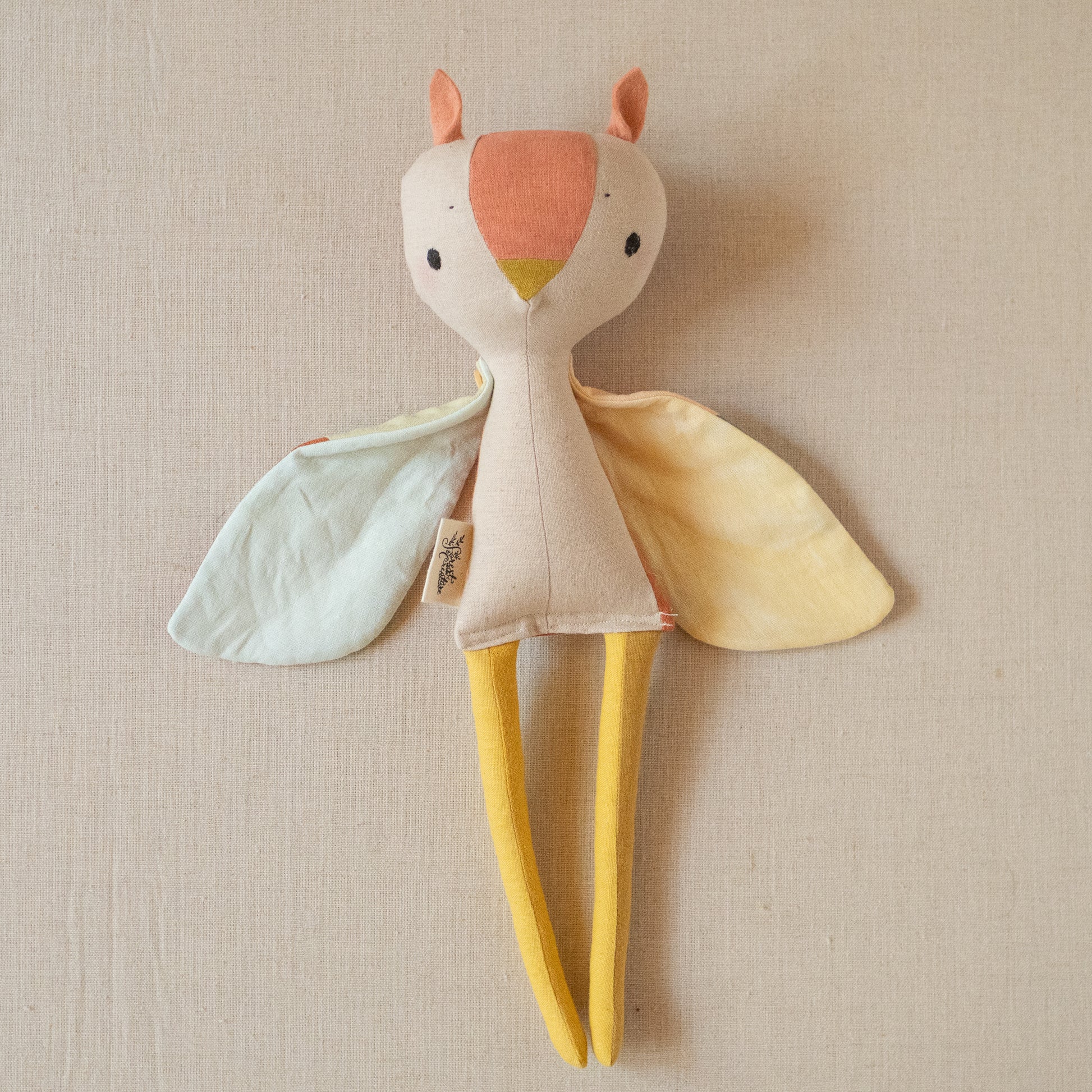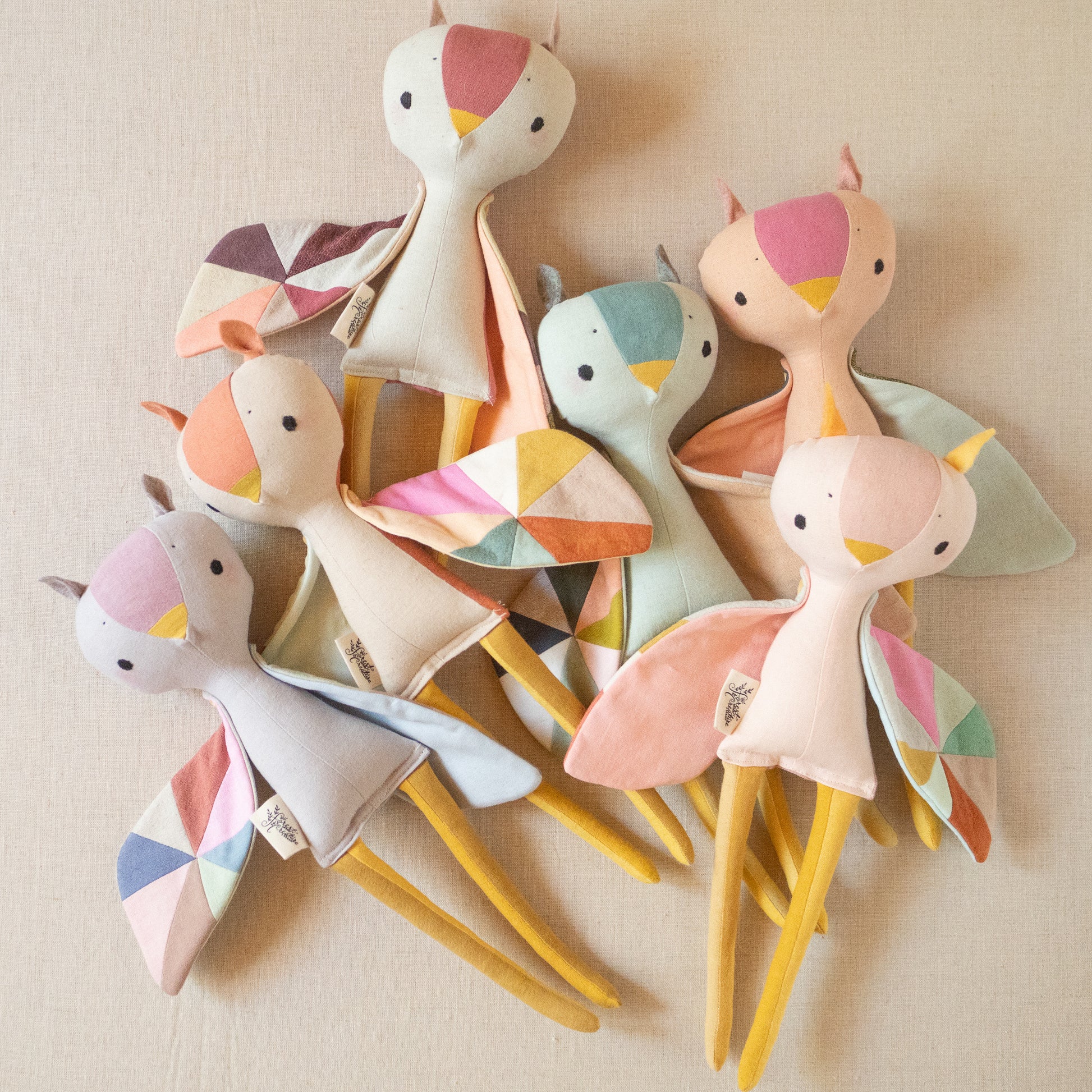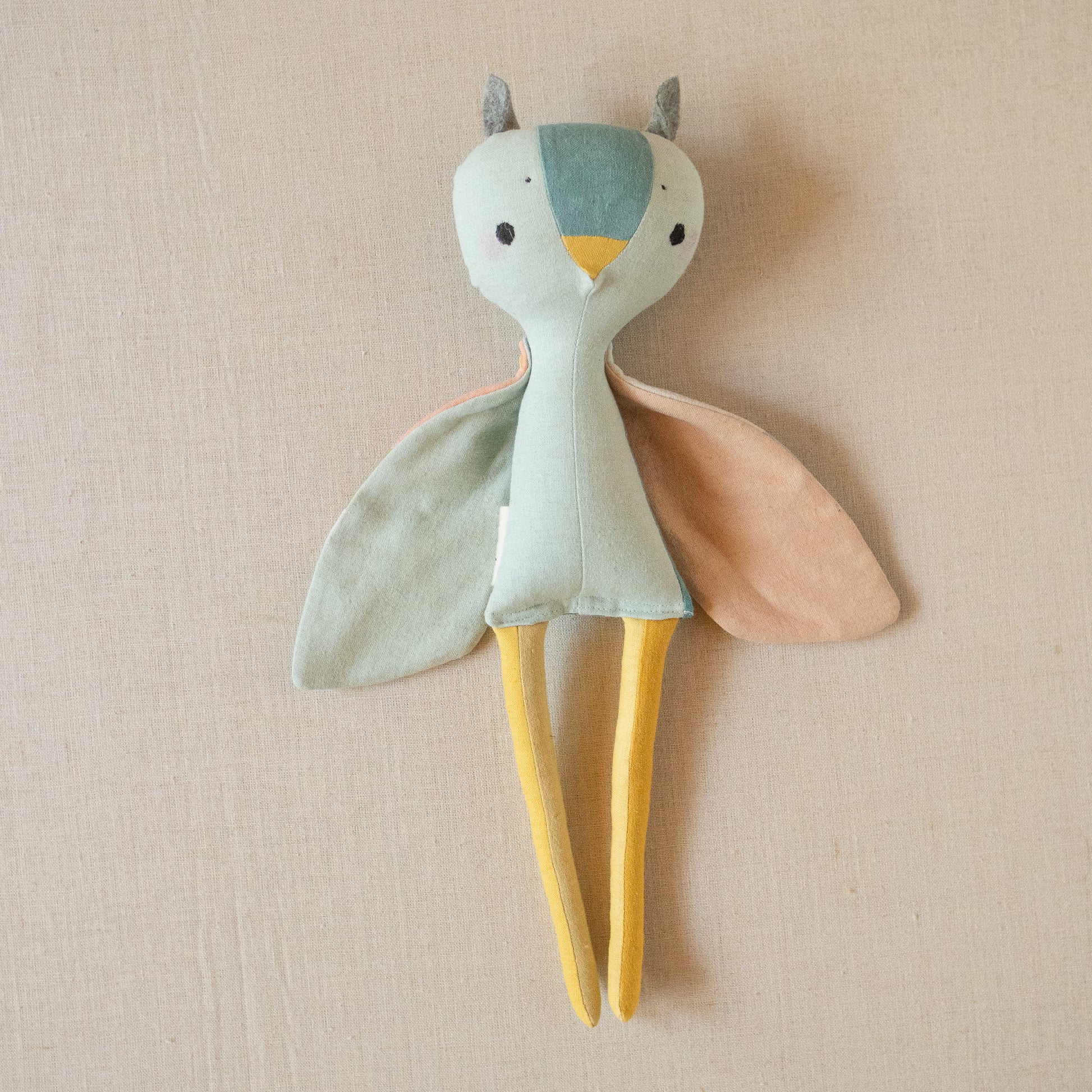 Our Quilted Owls are made from various linen and cotton/linen blends and feature hand-dyed fabric by Kye + Hardy. Please expect some beautiful natural variation in the fabric from this time intensive process. All owls have button-joined and beautifully quilted wings. Each doll is lovingly hand-stitched in Asheville, North Carolina.