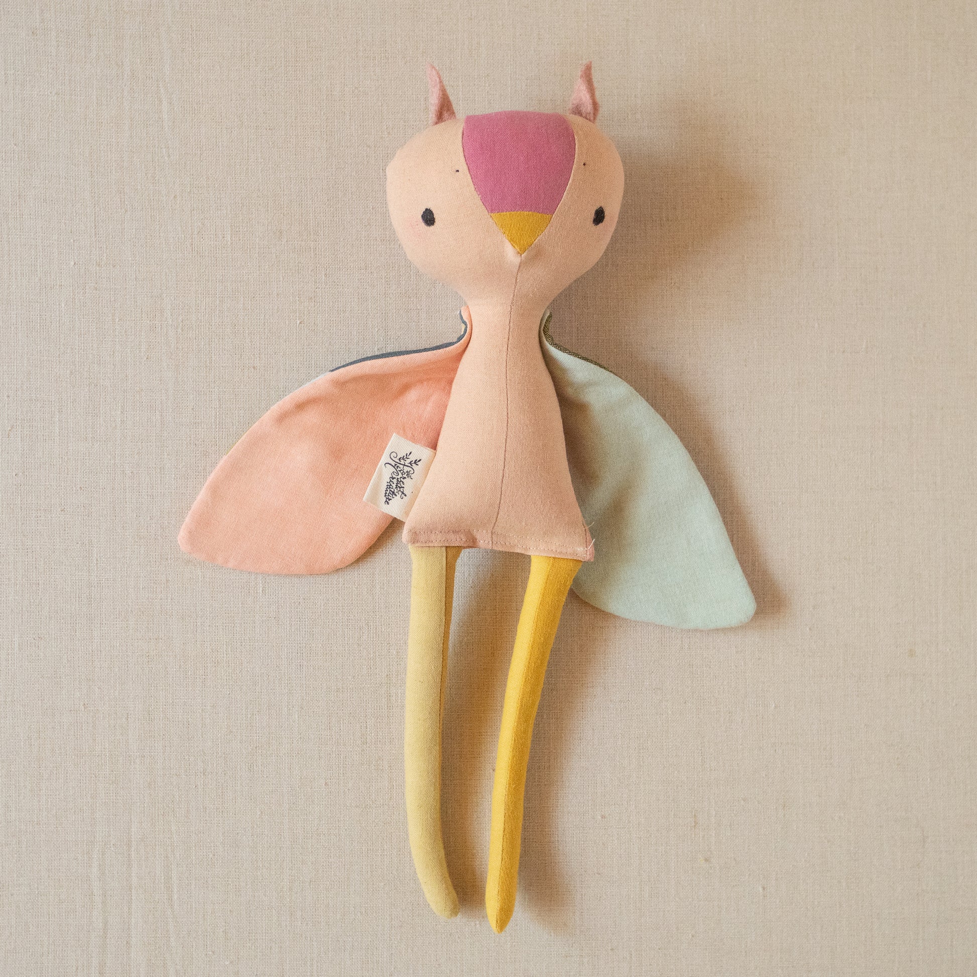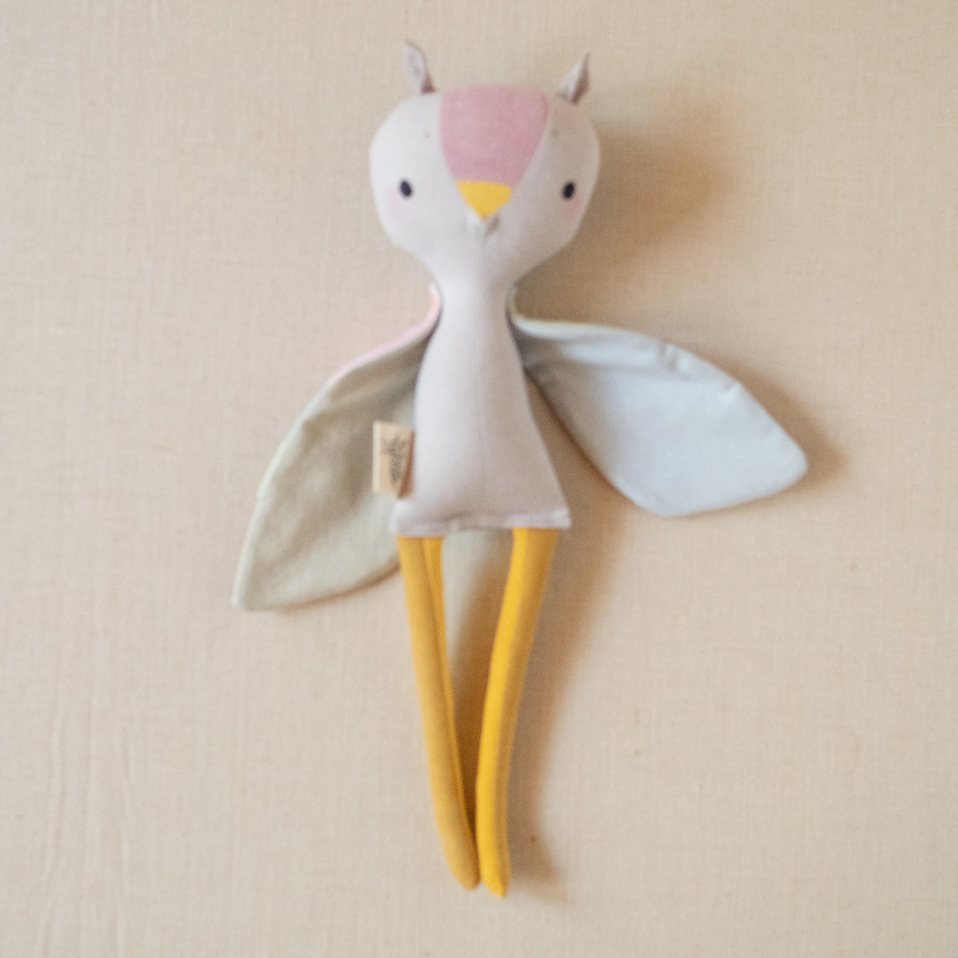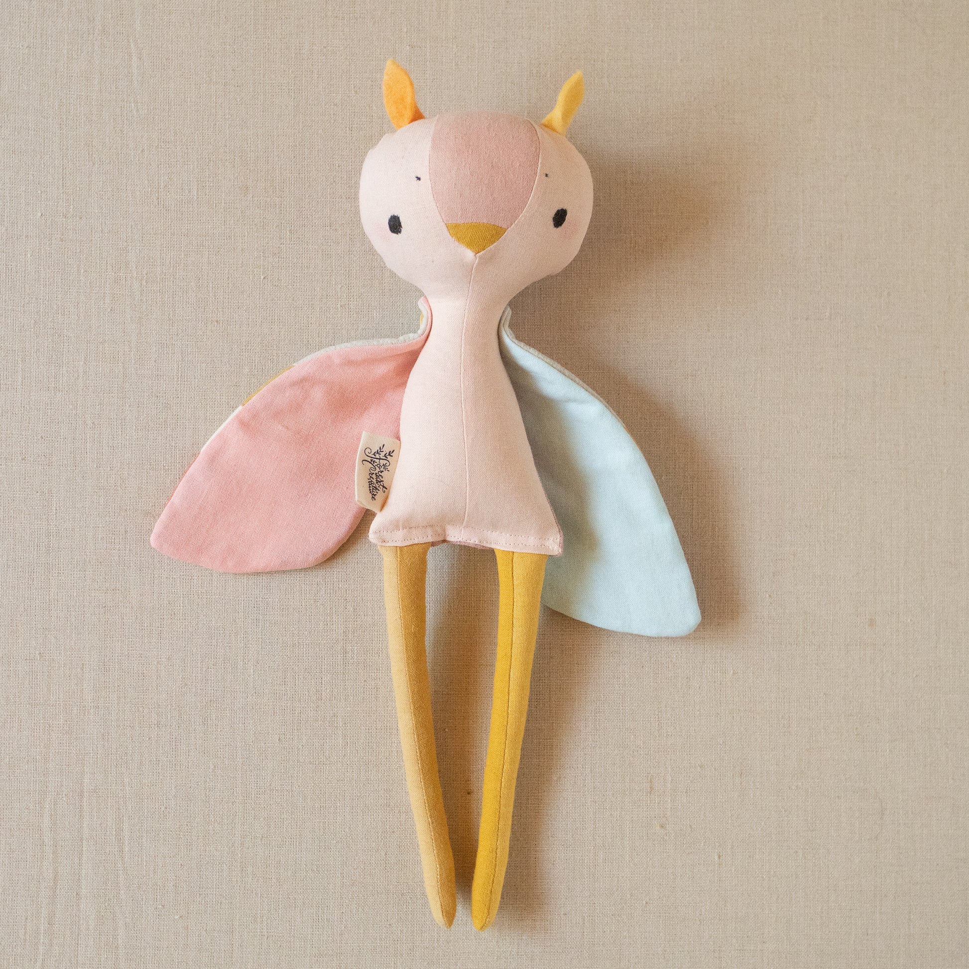 Our Quilted Owls are made from various linen and cotton/linen blends and feature hand-dyed fabric by Kye + Hardy. Please expect some beautiful natural variation in the fabric from this time intensive process. All owls have button-joined and beautifully quilted wings. Each doll is lovingly hand-stitched in Asheville, North Carolina.