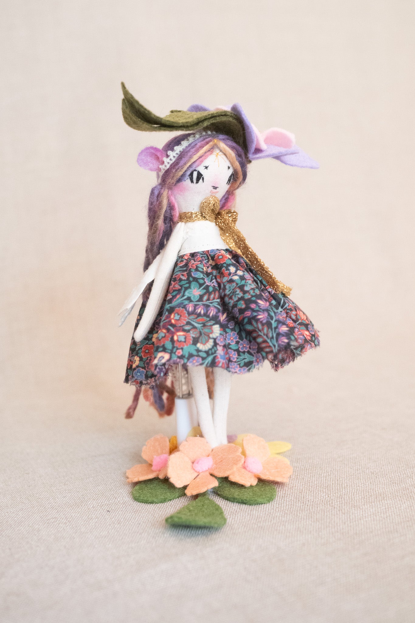 Each doll comes with a tiny doll stand covered in wool felt flowers and leaves so they can be displayed on any surface in your home!