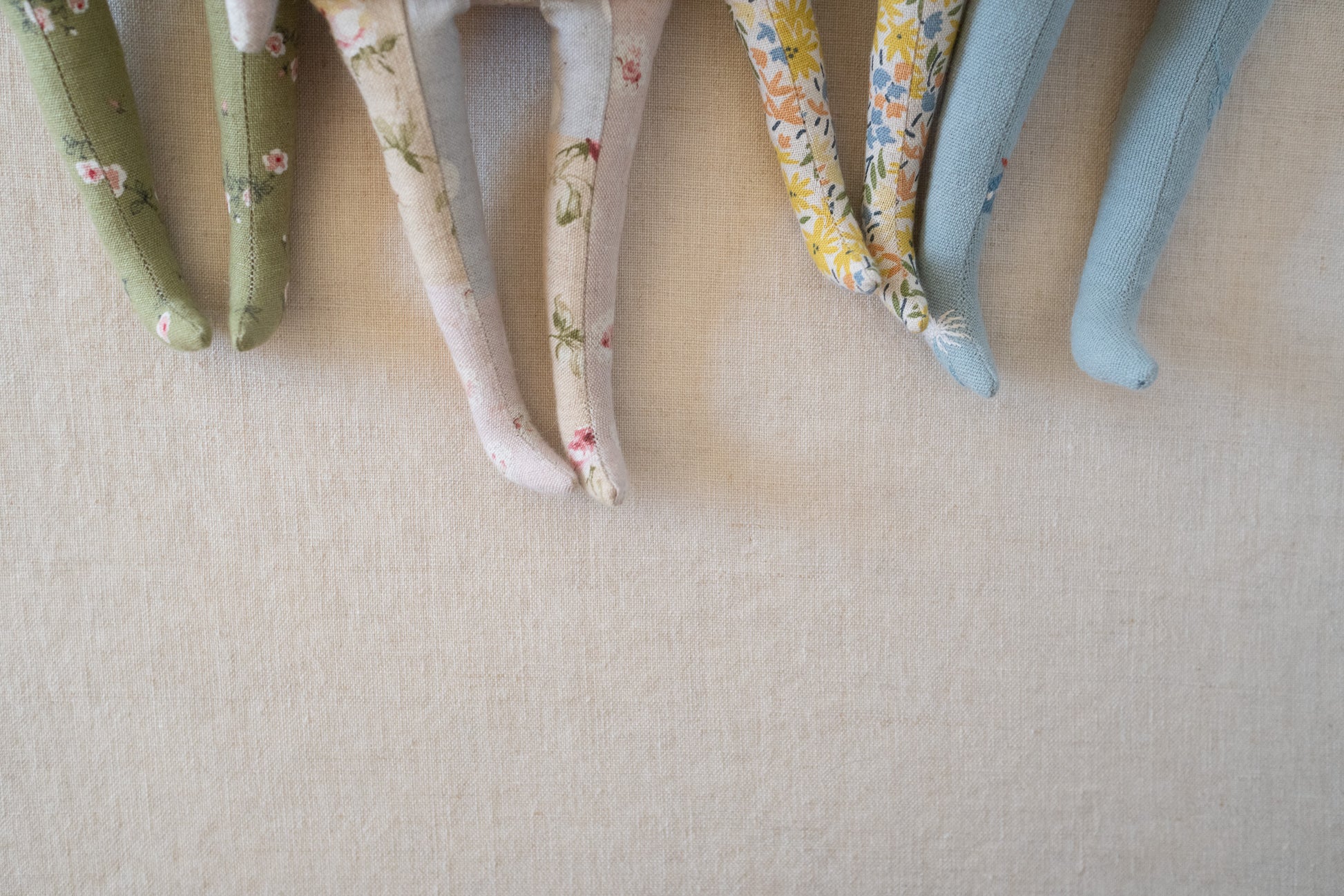 Our Elliot animals are made from a mix of fabrics including german mohair for the head/ears. Each doll is lovingly hand stitched in Asheville, North Carolina.
