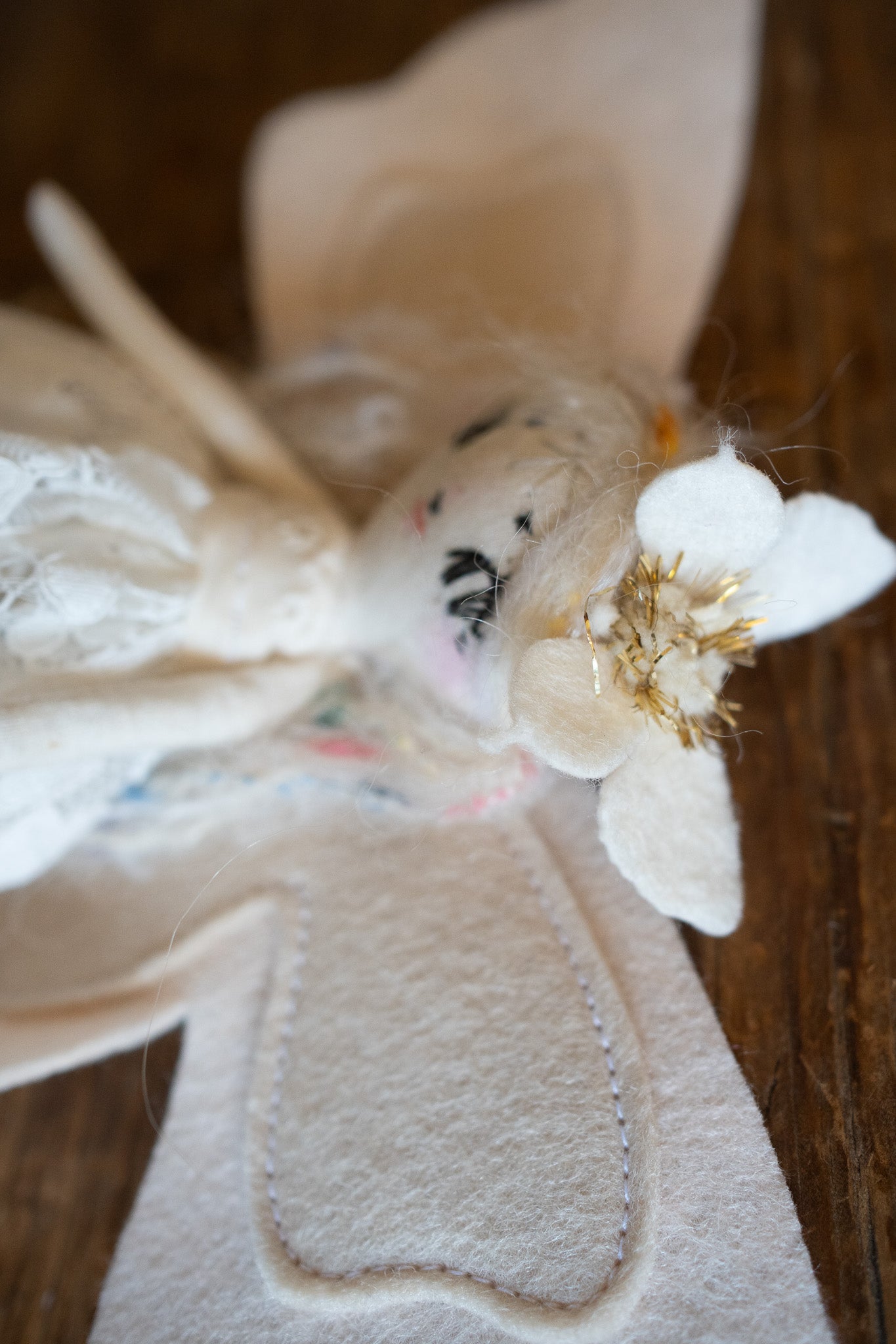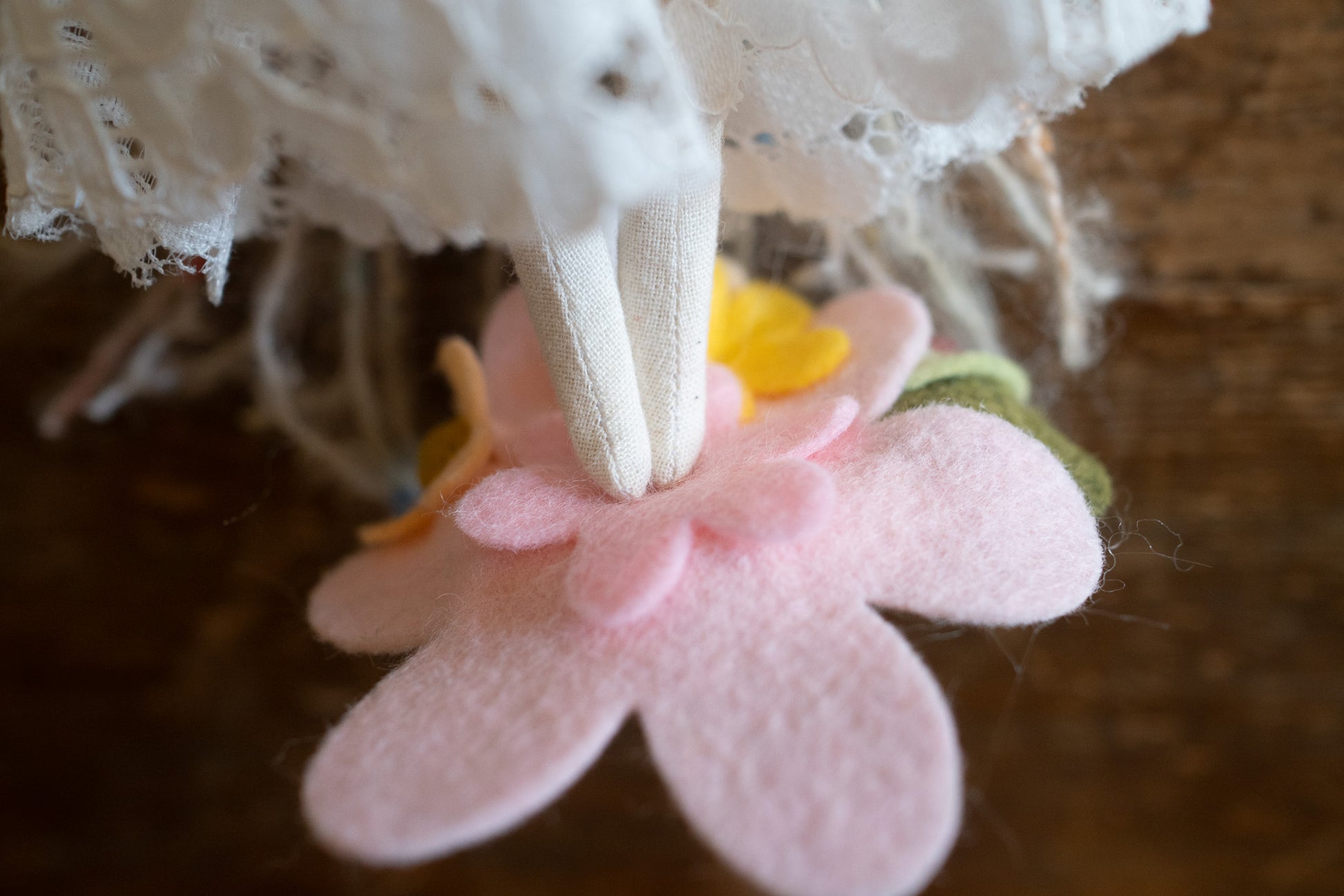 Each doll comes with a tiny doll stand covered in wool felt flowers and leaves so they can be displayed on any surface in your home! This batch also comes with wire/felt flowers!