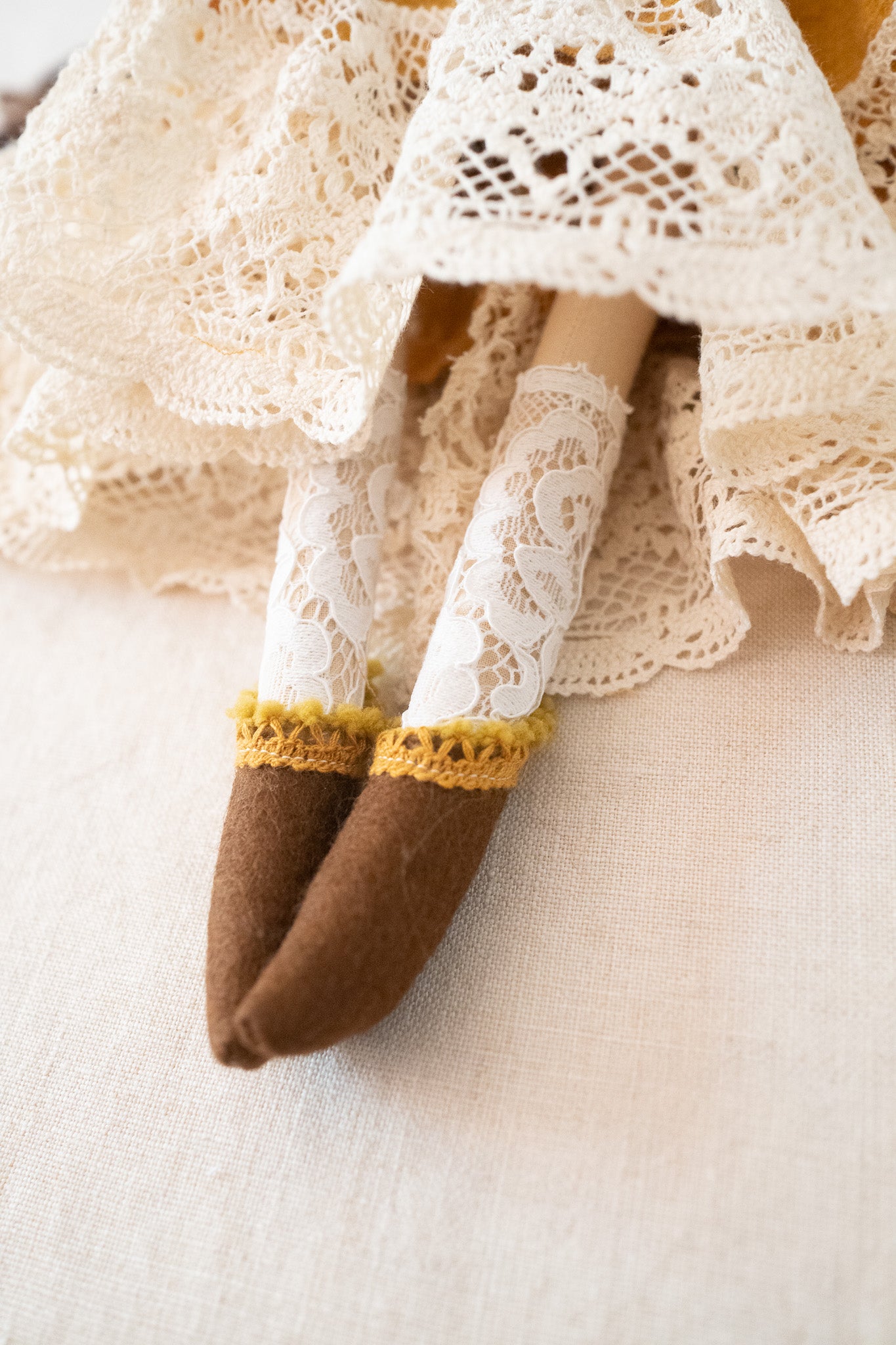 At 14" tall our Fairytale Girls are perfect for snuggling and dress up. These heirloom dolls come with sewn-in lace underwear and detailed, hand-embroidered faces.