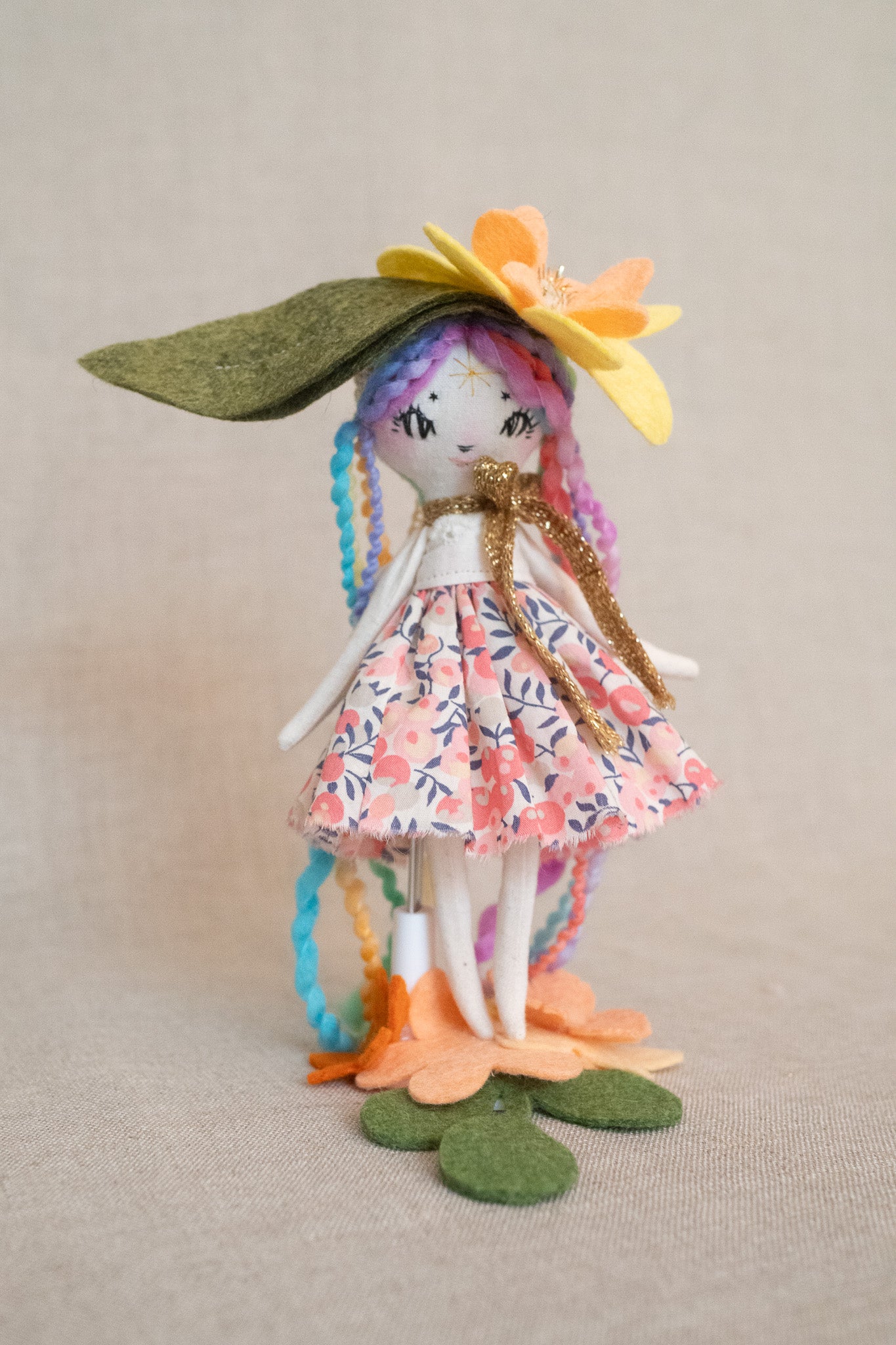 Each doll comes with a tiny doll stand covered in wool felt flowers and leaves so they can be displayed on any surface in your home!