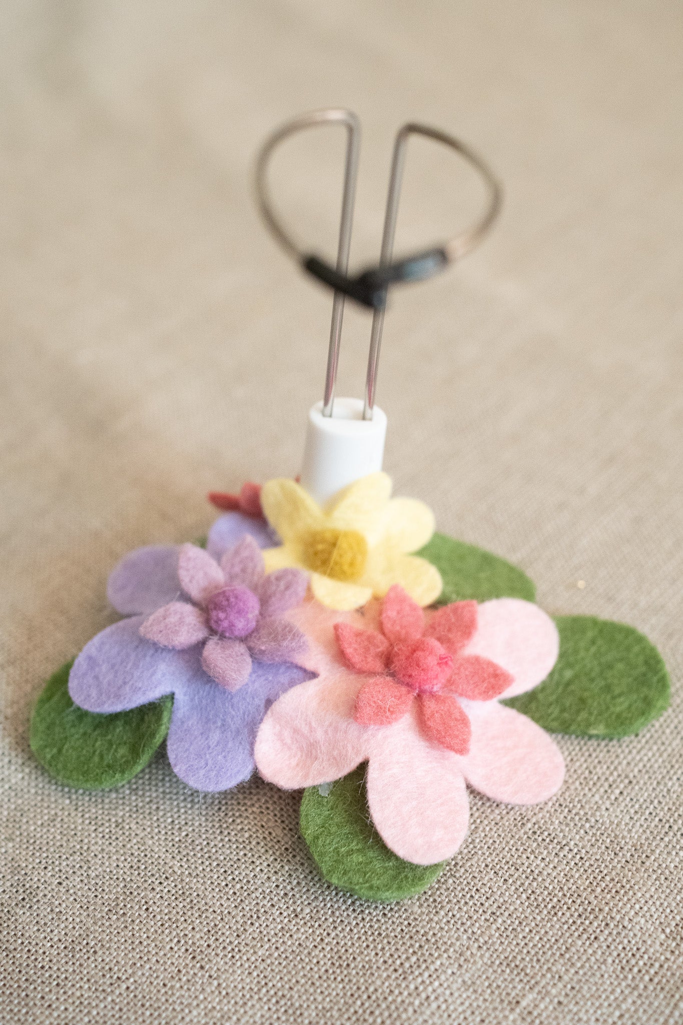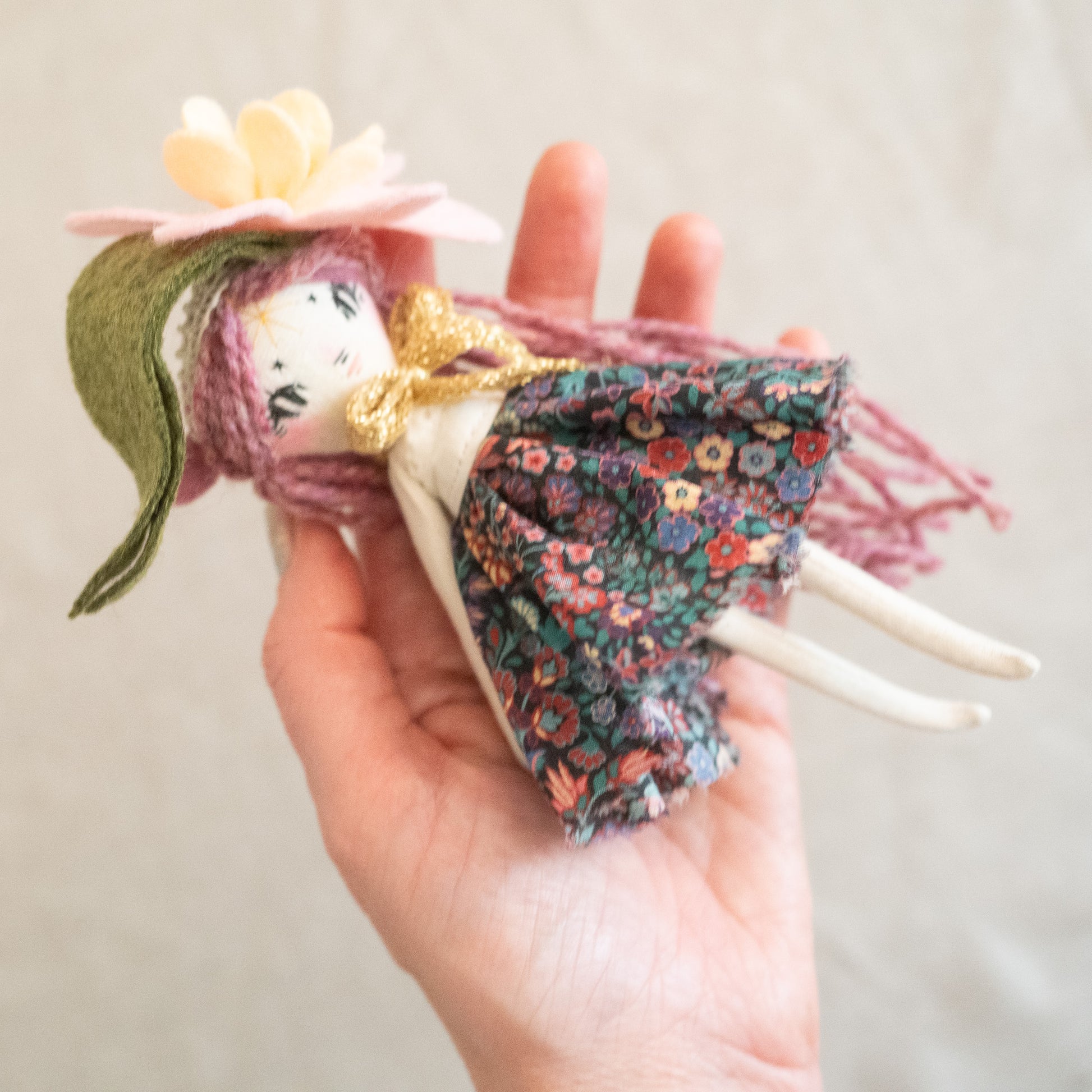 Each doll comes with a tiny doll stand covered in wool felt flowers and leaves so they can be displayed on any surface in your home!