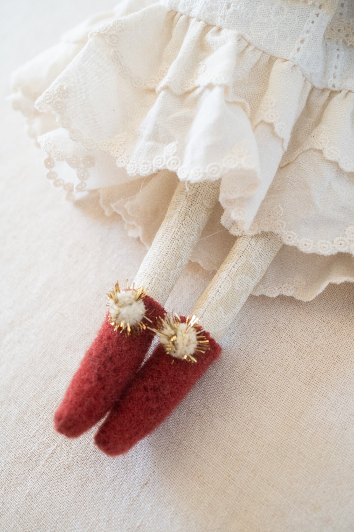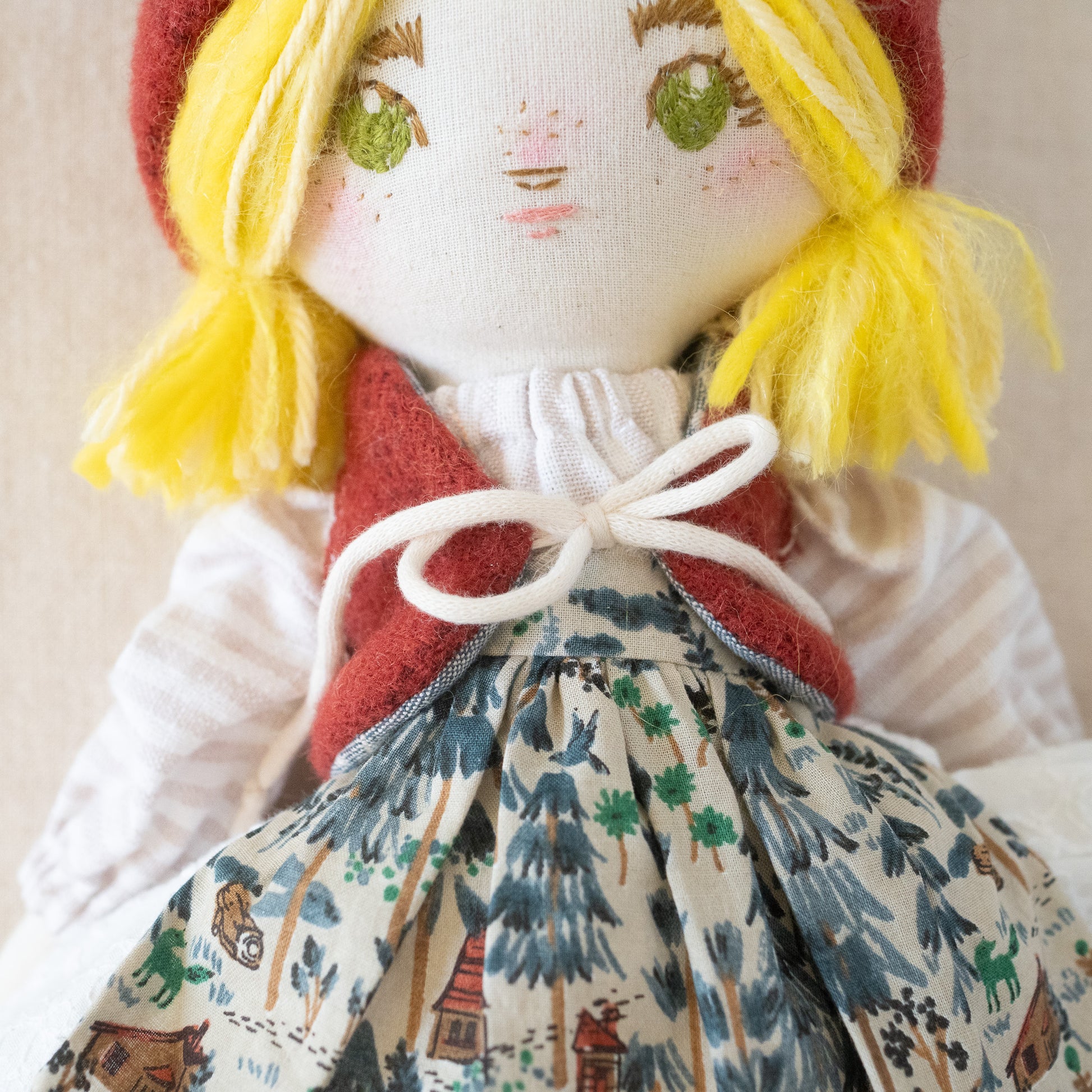 At 14" tall our Fairytale Girls are perfect for snuggling and dress up. These heirloom dolls come with sewn in lace underwear and detailed hand embroidered faces.
