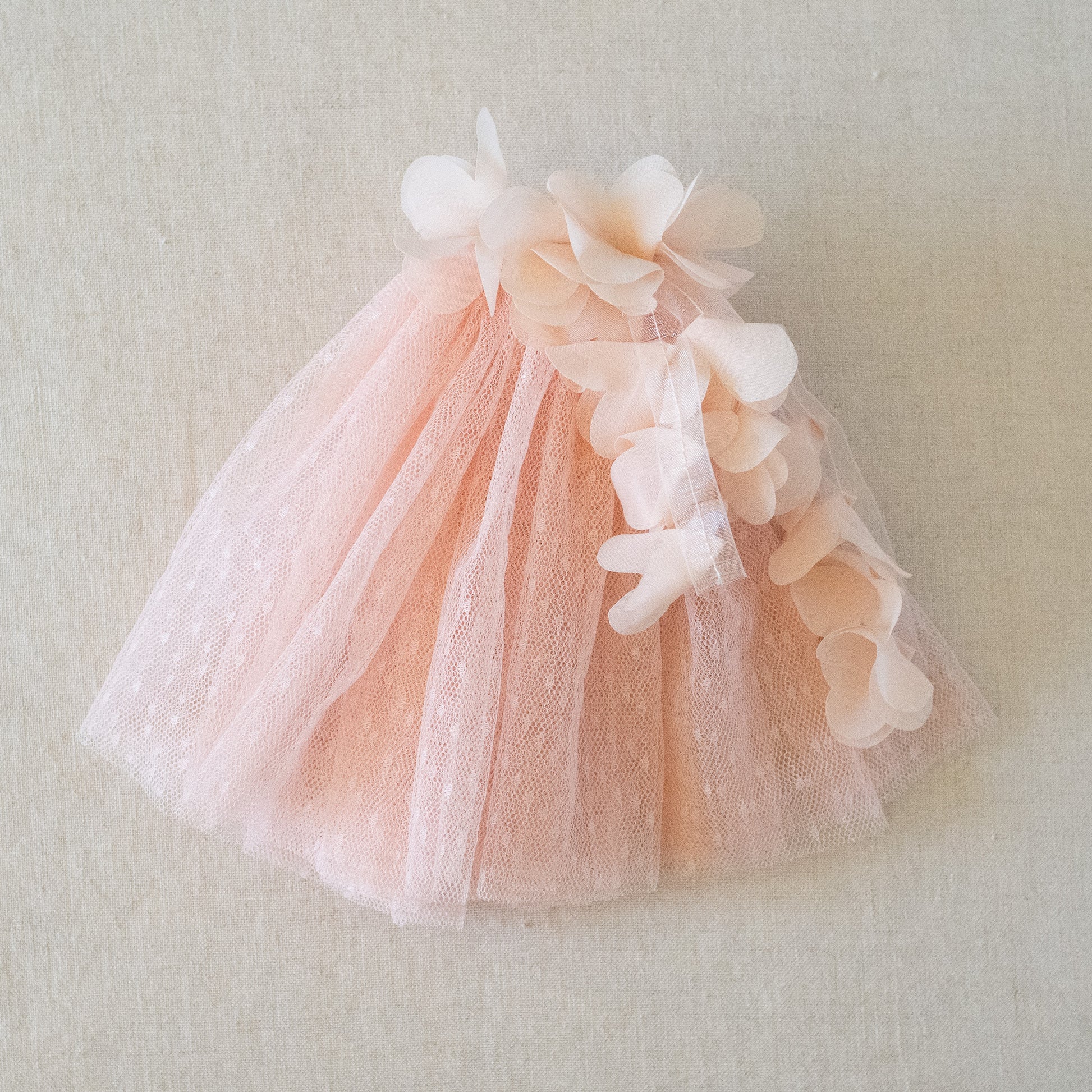 A layered dream of a dress with beautiful flowers cascading down the front.