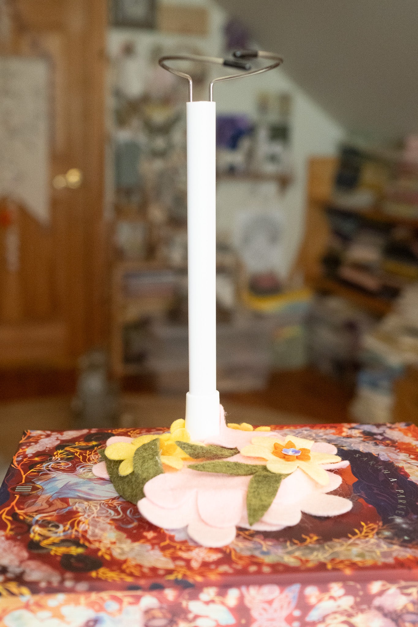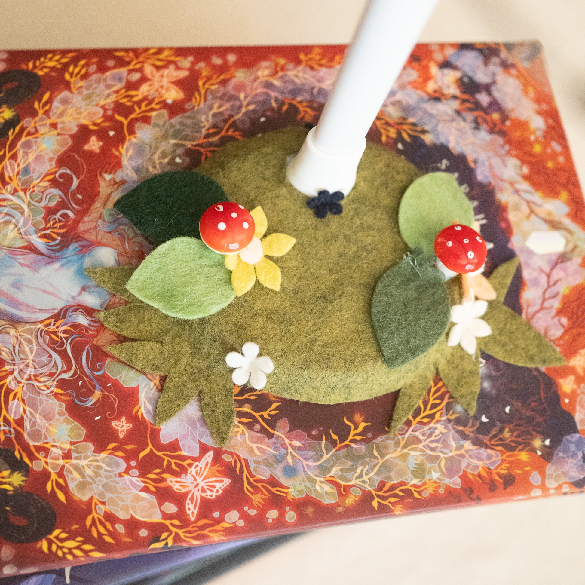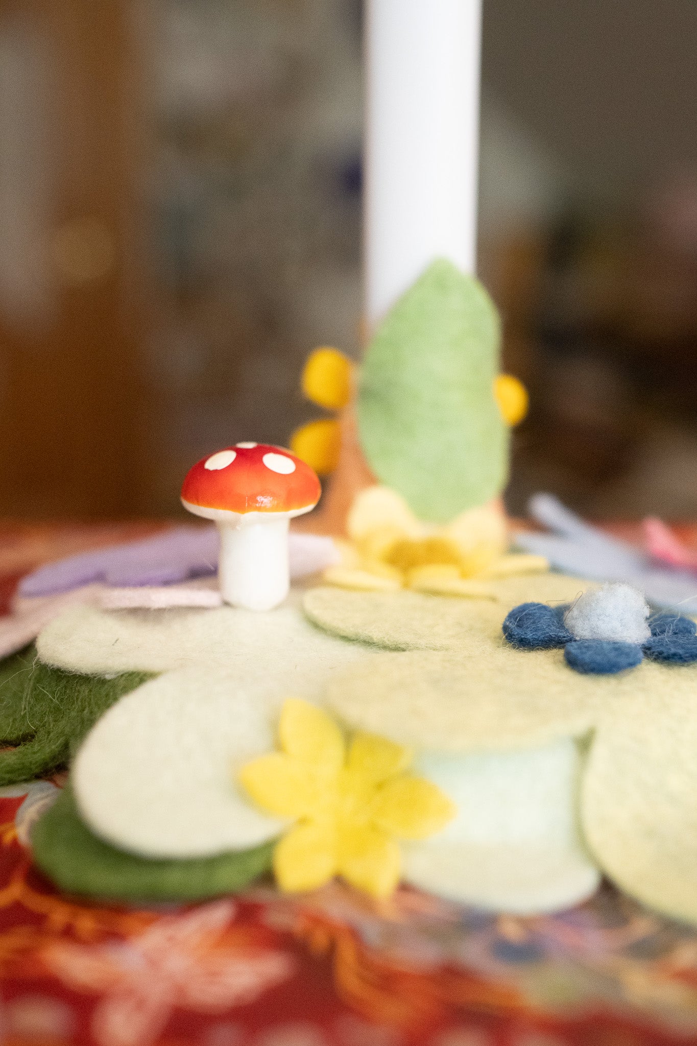 One of a kind felt flower and mushroom doll stands for your 14" dolls. Adjustable but fits out regular pixies and forest friends best.