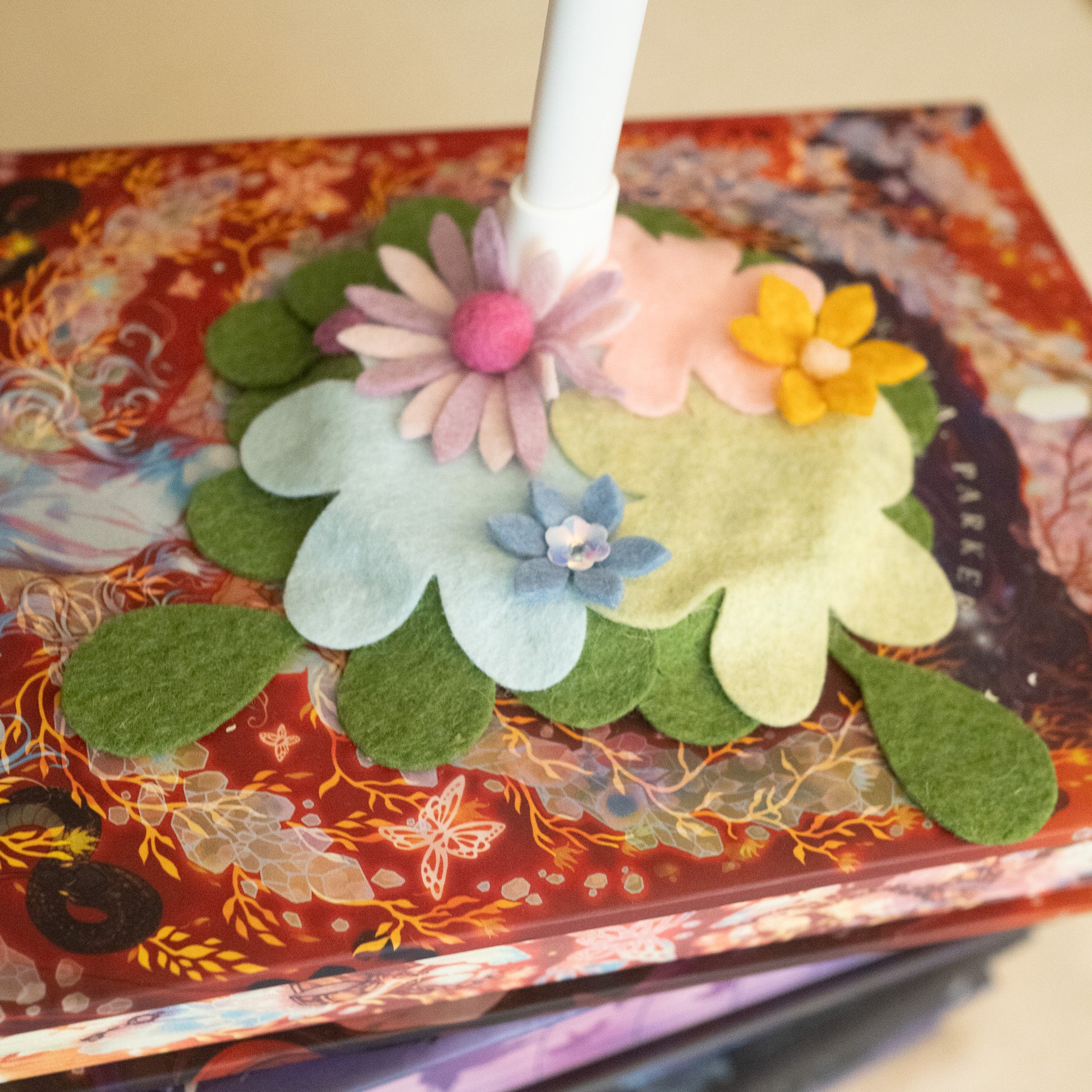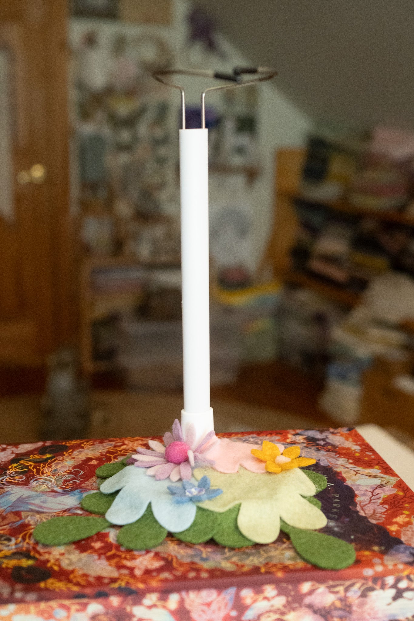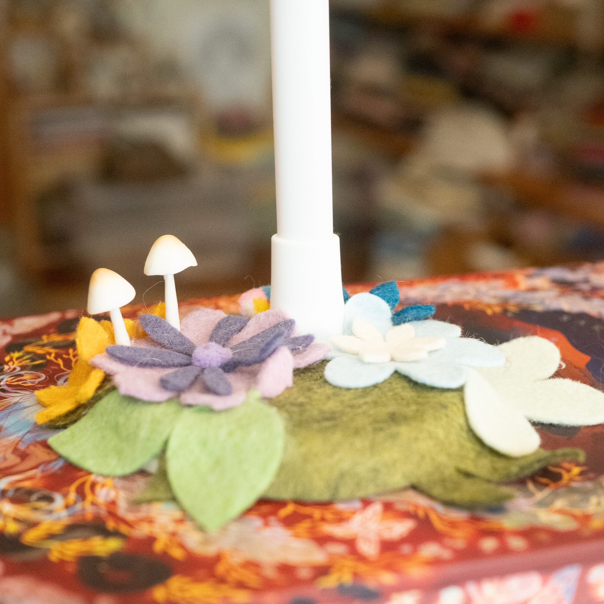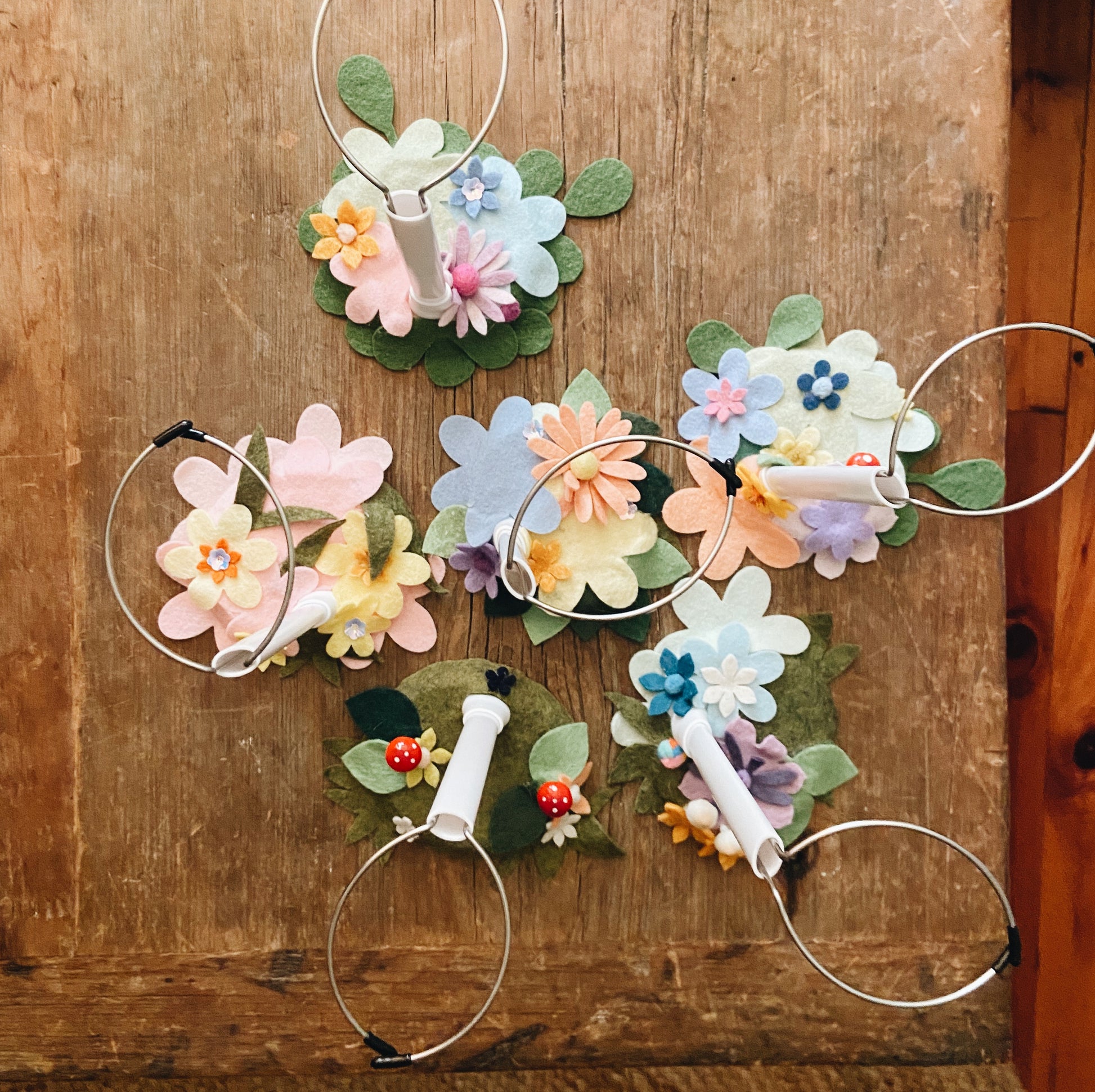 One of a kind felt flower and mushroom doll stands for your 14" dolls. Adjustable but fits out regular pixies and forest friends best.