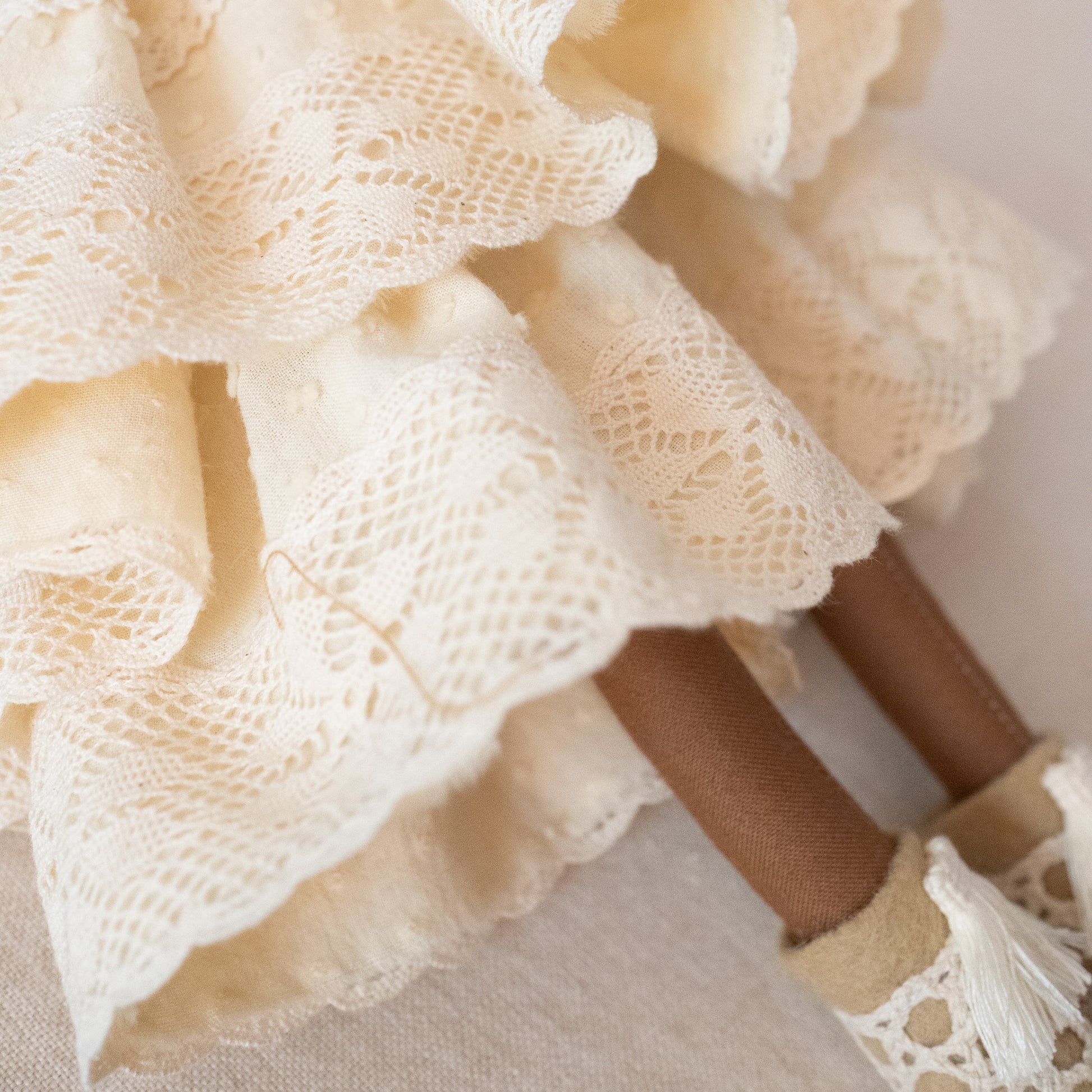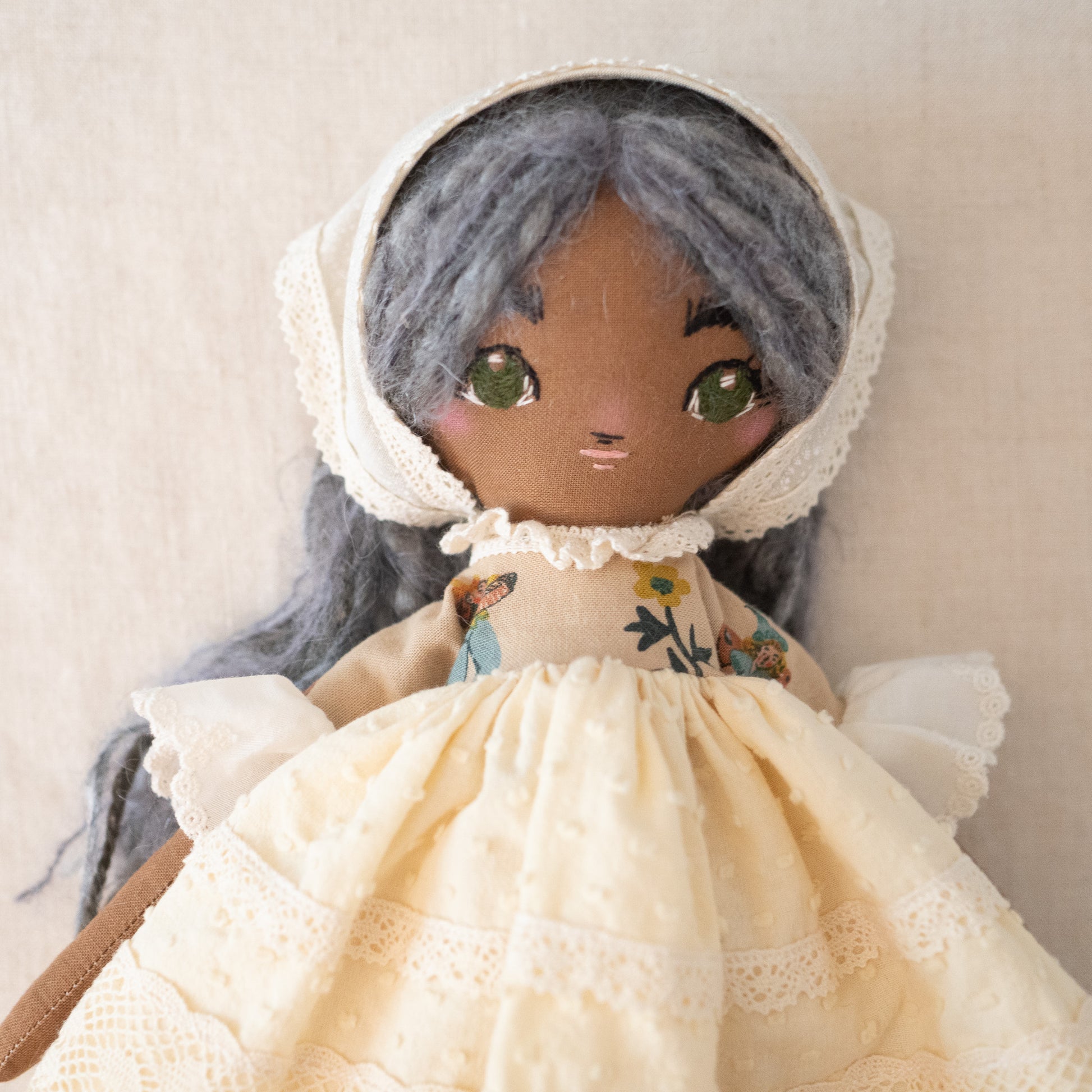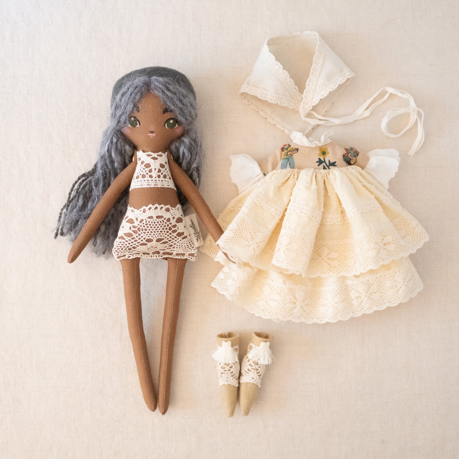 At 14" tall our Fairytale Girls are perfect for snuggling and dress up. These heirloom dolls come with sewn-in lace underwear and detailed, hand-embroidered faces.