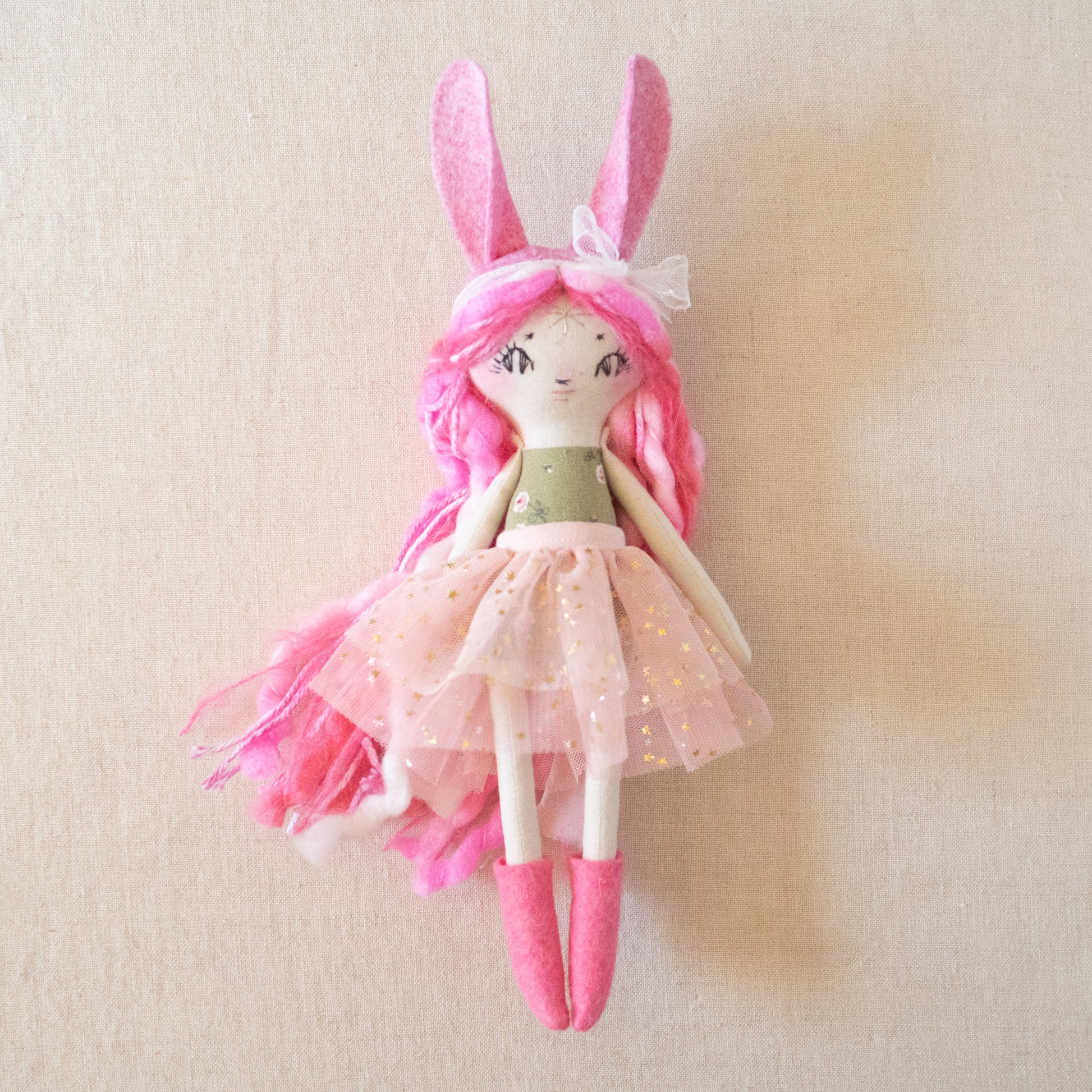 At 11" (those ears add some height!) tall our Petal Pixies are perfect for snuggling, tucking into pockets, and dress up.