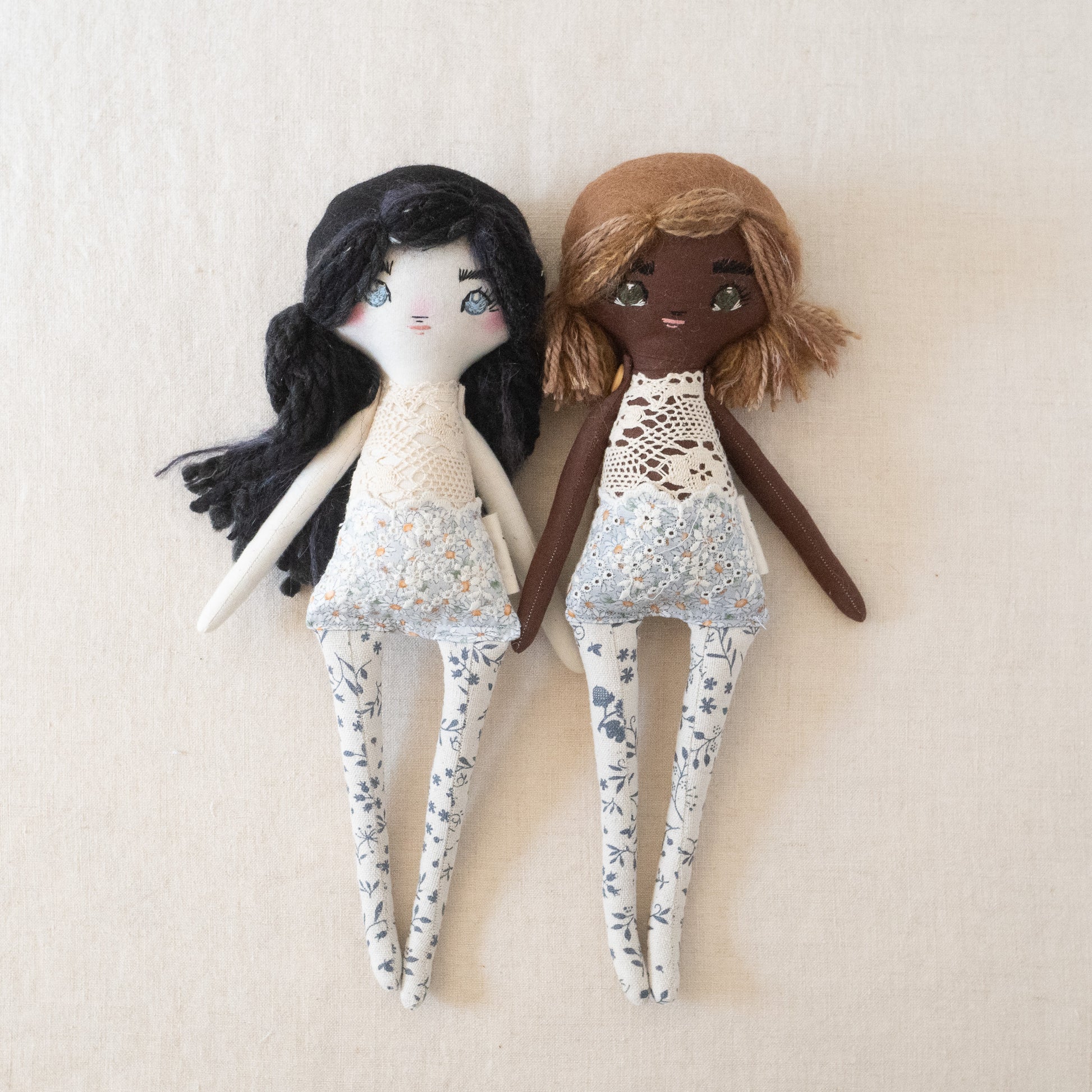 At 14" tall our Fairytale Girls are perfect for snuggling and dress up. These heirloom dolls come with sewn in lace underwear and detailed hand embroidered faces.