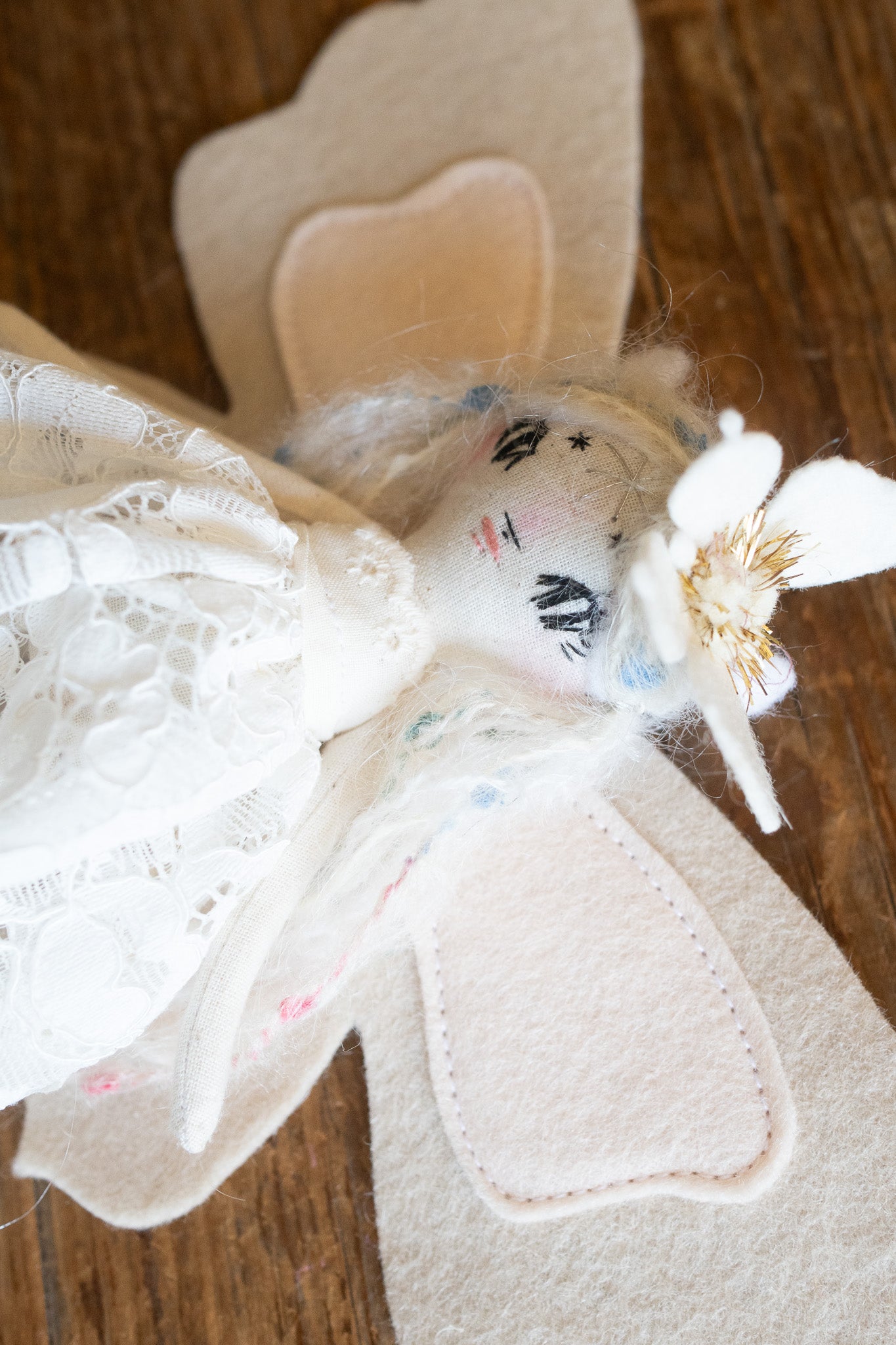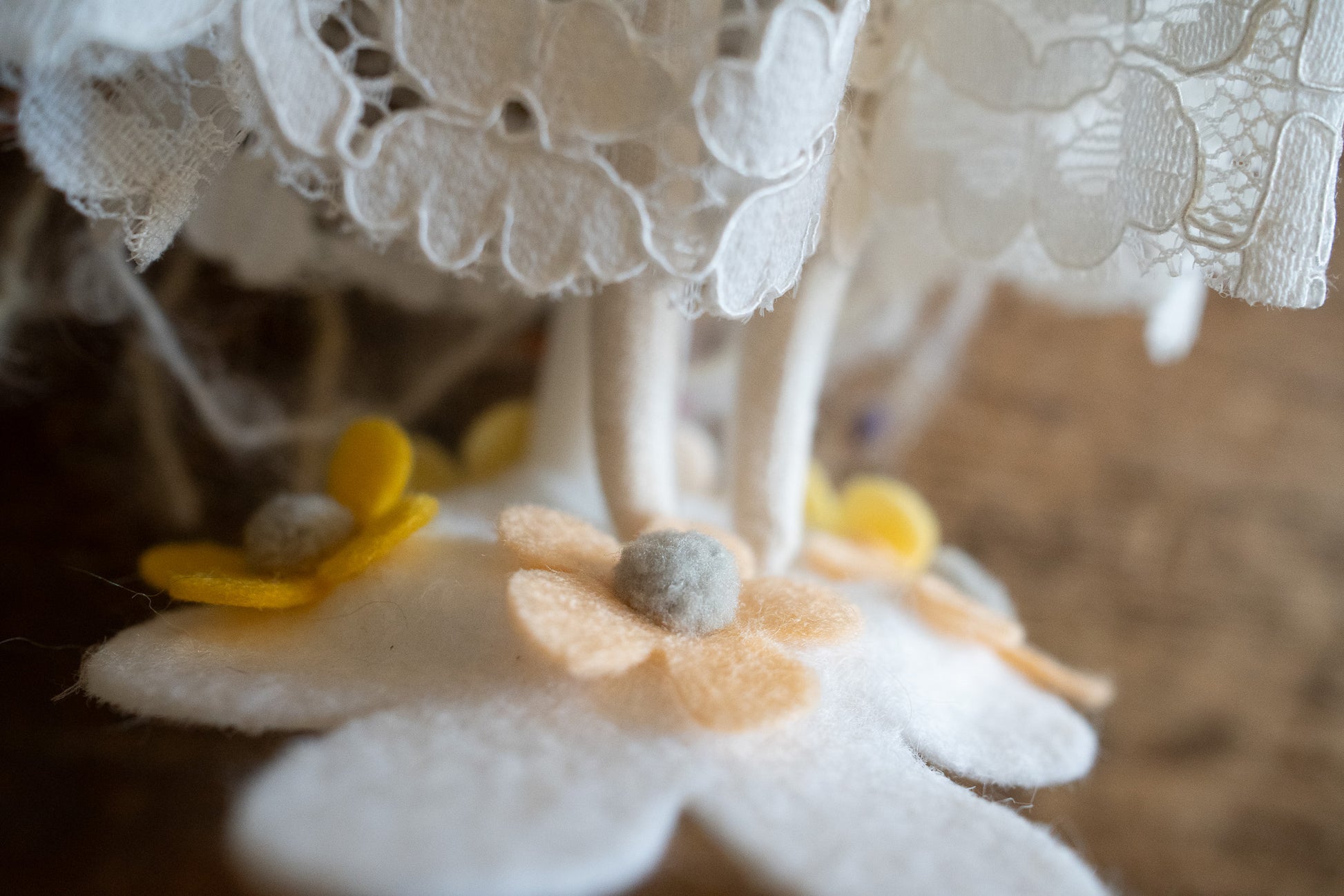 Each doll comes with a tiny doll stand covered in wool felt flowers and leaves so they can be displayed on any surface in your home! This batch also comes with wire/felt flowers!