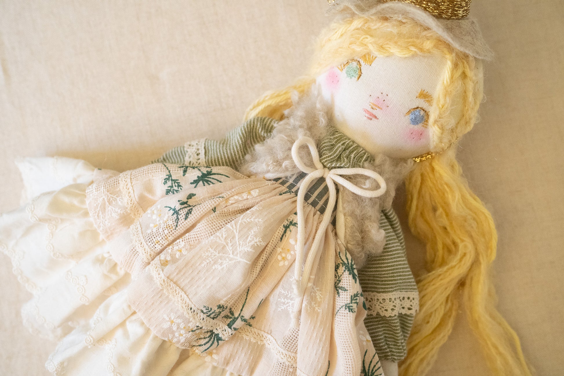 At 14" tall our Fairytale Girls are perfect for snuggling and dress up. These heirloom dolls come with sewn in lace underwear and detailed hand embroidered faces.