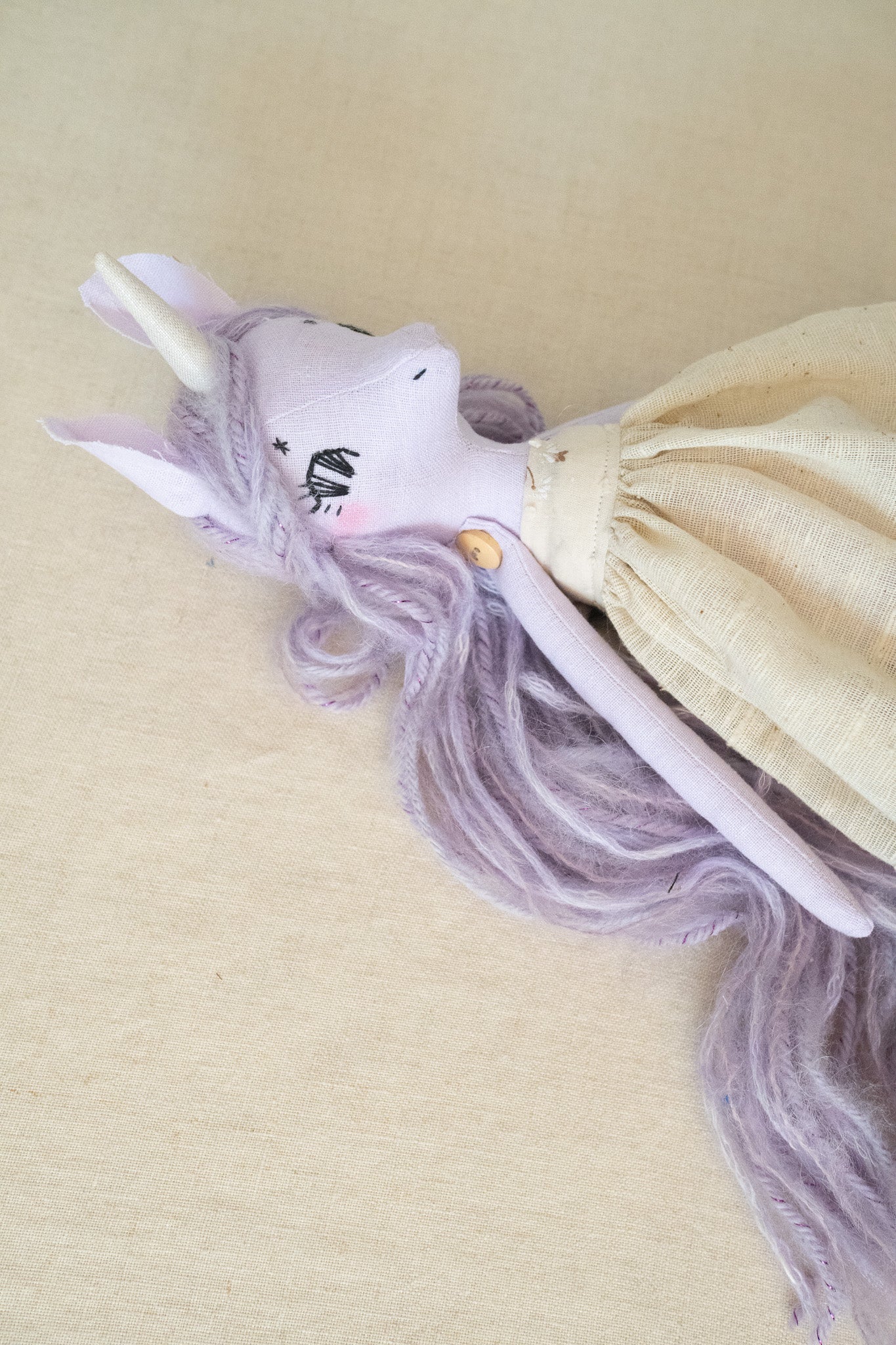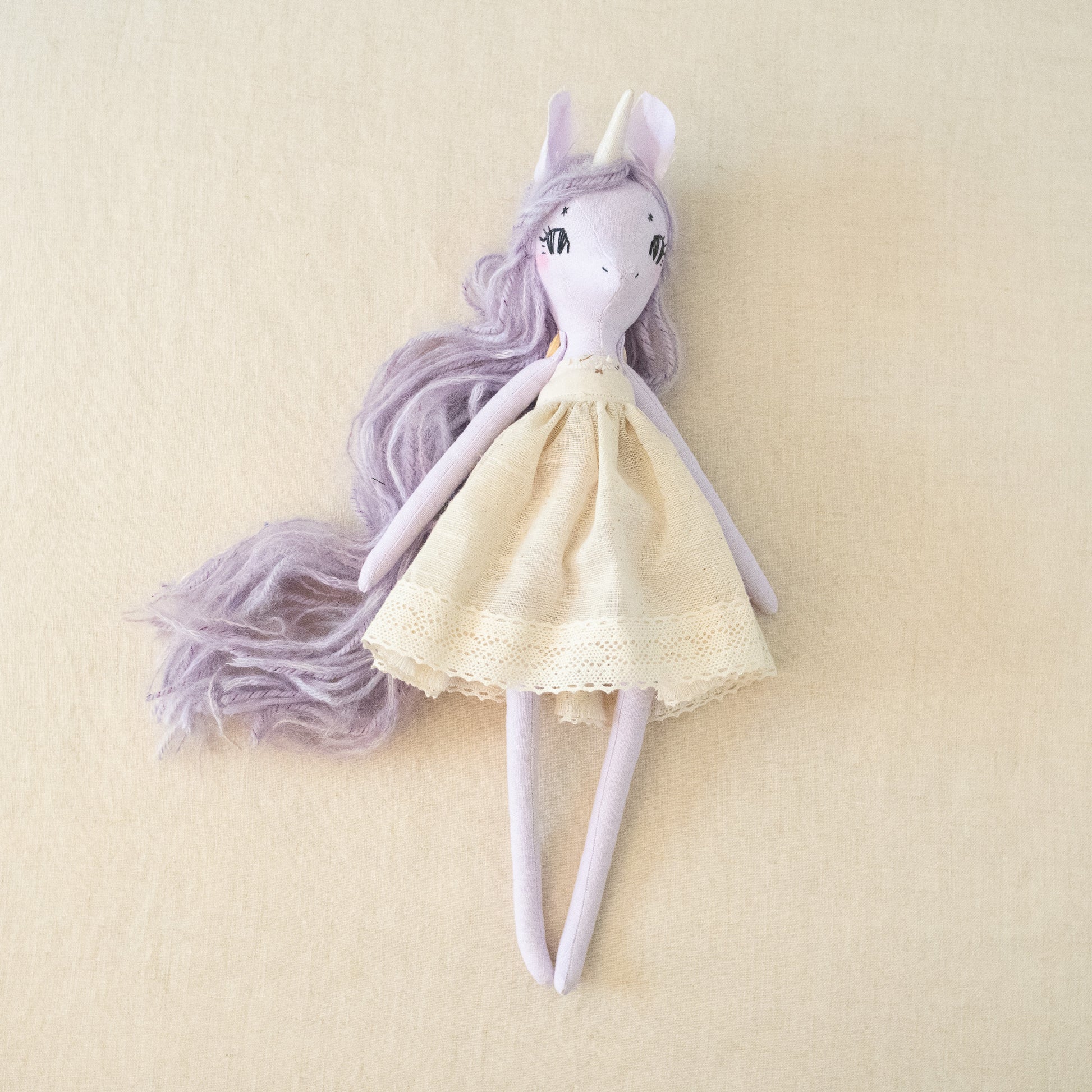At 14" tall our Unicorns are a bit more delicate than the Pixie dolls. They are best as snuggling companions or for collectors! The Unicorn dolls fits all our standard clothing and can be dressed and undressed over and over however there head is a bit more narrow and they don't do so well with hats!